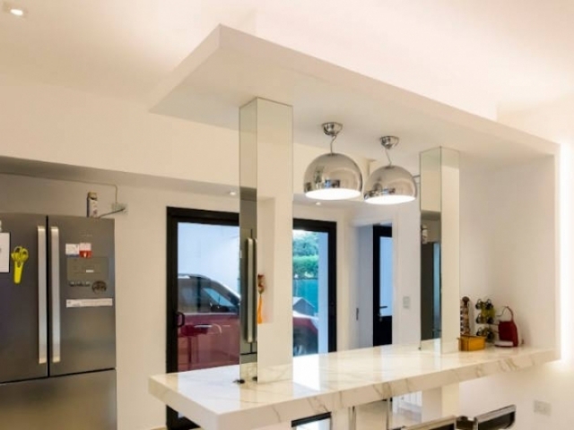 En revestimiento de piso y paredes se utilizaron grandes placas de porcelanato, la mayoría de ellas pulida de primera calidad.